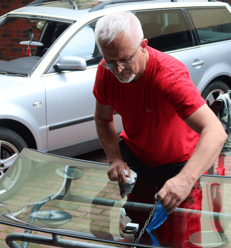 Wymiana szyby czołowej zwykle trwa 1–1,5 h + czas wiązania kleju (zalecamy odczekać ok. 1 h przed jazdą). Szyby boczne: 30–60 min. Czas zależy od modelu pojazdu i wyposażenia (czujniki, kamera, anteny).